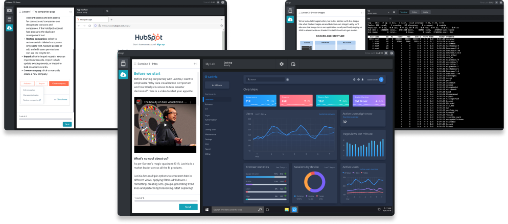 Empower your learners to learn your product hands-on by giving each of them a clean product environment to train in. These cloud-based environments automatically spin up and tear down according to the learners' needs, supporting your training scale with ease.